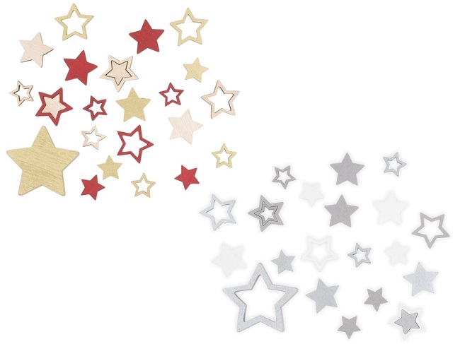dekorace hvězdy dřevěné 2,5 cm+3,5 cm, červená,zlatá, 24 ks (4939)