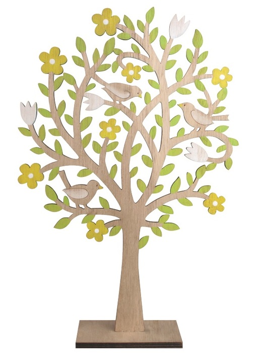 dekorace strom dřevěný se žlutými květy na postavení 30 cm (7630)