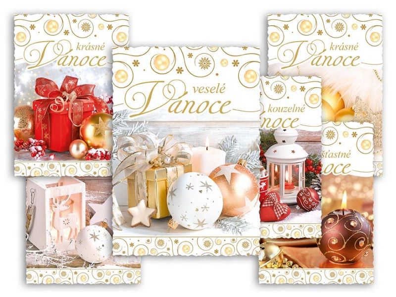 pohledy - vánoční s glitry, vykrajované, mix motivů