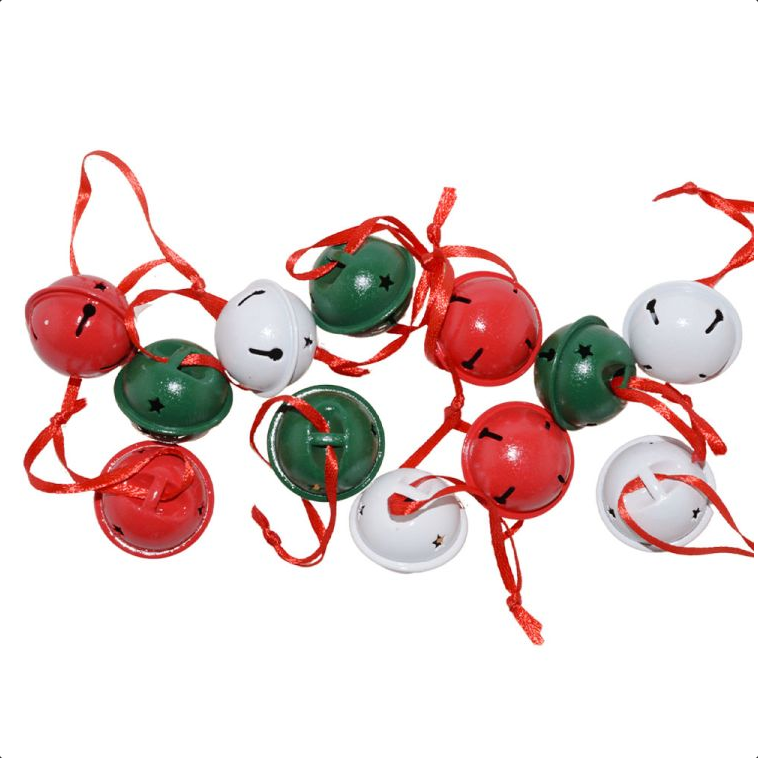 Sada rolniček k zavěšení v tradičních vánočních barvách. Balení obsahuje 12 kusů rolniček v různých barvách - červená, zelená a bílá s červeným poutkem k zavěšení, vždy po 4 kusech od barvy. Velikost: pr. 3 cm Cena je uvedena za 1balení.