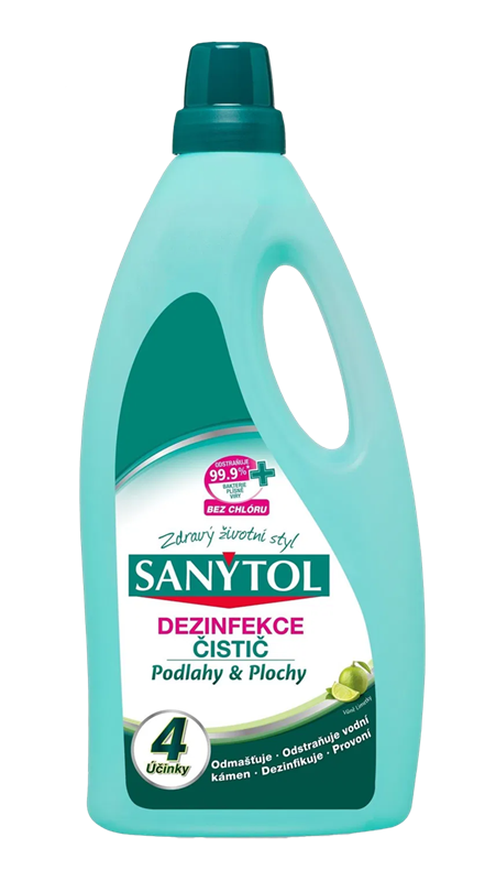 Sanytol Dezinfekce Univerzální čistič na podlahy a velké plochy, čistí a odmašťuje všechny plochy v domácnosti. - podlahy, dlaždice, laminátové podlahy, mramor, cihly, kovové plochy… - neobsahuje chlór - objem 1 litr