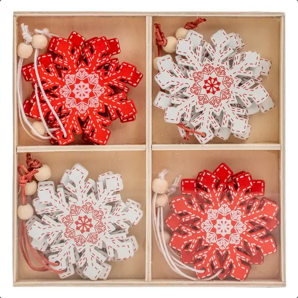 vánoční ozdoba dřevěná závěs 12 ks, 6 cm (198465)